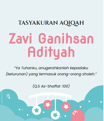 TASYAKURAN AQIQAH Zavi Ganihsan Adityah Senin, 13 April 2026 Kepada Yth. Nama Tamu Open Invitation TASYAKURAN AQIQAH Zavi Ganihsan Adityah “Ya Tuhanku, anugerahkanlah kepadaku (keturunan) yang termasuk orang-orang sholeh.” (Q.S As-Shaffat :100) ASSALAMUALAIKUM WARAHMATULLAHI WABARAKATUH Dengan memohon rahmat dan Ridho Allah Subahanahu Wata’ala, kami mengundang Bapak/Ibu/Saudara (i) untuk hadir dalam acara Tasyakuran Aqiqah Putra Pertama […]